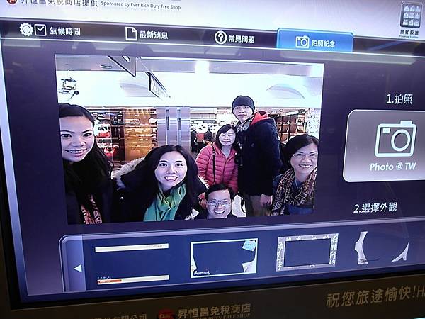 在前往登機門的路上,還不忘利用機場免稅店的設備拍張全家大頭貼,留下第一張大合照...可俏皮呢~