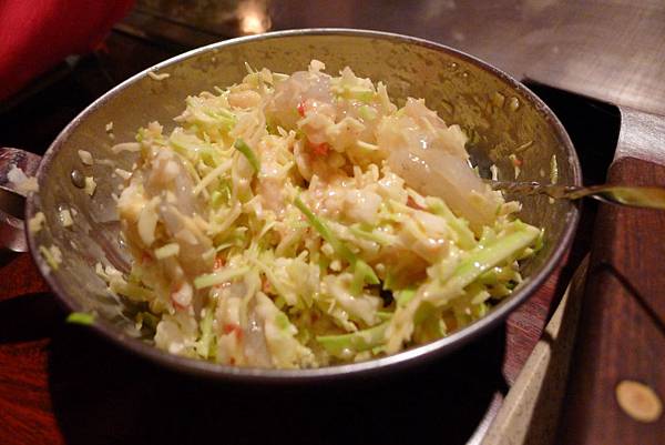 餐廳會先幫你把材料準備好放在碗中,在自己手動攪拌均勻..然後就可以放在鐵板上在加入自己喜愛的調味醬。