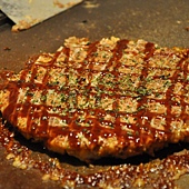 宅男小弟馬上起身爲大家煎起大阪燒..看他身懷絕技手腳熟練...
